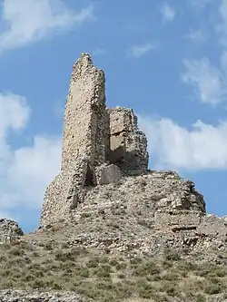 Between 1140 and 1150 seven royal charters and one private document name Gutierre as "lord in Soria" (domino in Soria),[18] and he may have held it down to 1152 at least.[12] As of 26 July 1148, Gutierre had accepted a co-tenant in Soria: Fortún López.[41] About the same time (1148), he received the lordship of Roa de Duero.[12][42] He may even have been appointed "commander" (adelantado) of the diocese of Osma.[19] In 1145–46 he was lord of Arnedo.[12][19][43] In 1148–49 he held the fortress of Rueda de Jalón, which had been surrendered to Alfonso VII after Gutierre's embassy to Sayf al-Dawla in 1131. This fortress lay only 35 km west of Zaragoza, which Raymond Berengar of Barcelona held as a vassal of Alfonso.[44] At about this time contemporary charters begin to record his preeminence in the Castilian heartlands, Old Castile. He is referred to as "prince of Castile" (princeps Castelle) in imperial diplomas[23] and in private documents.[45] He was not usually called a prince (an informal title), and he never held the formal rank of count; his most common title in royal documents was simply "potentate" (potestas).[23] This title was employed without any reference to a tenancy between 1143 and 1150.[46] A later series of documents calls him "potentate (or authority) in Castile" (potestas in Castella) between 1156 and 1158, probably indicating a new administrative role in Old Castile in conjunction with the succession events of 1157 and 1158.[47][48][49] A fuero promulgated by the abbot of Santa María de Husillos on 21 November 1160 refers to the authority Gutierre still possessed in Castile at that time.[50]