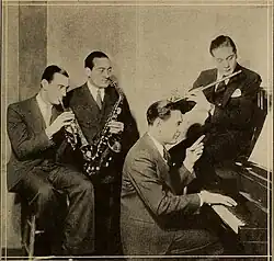 As early as 1933, Lombardo appeared with his brothers Carmen, Lebert and Victor performing in the film Rambling 'Round Radio Row for Warner Brothers' Vitaphone division.[33] Lombardo and his orchestra were also part of the 1934 film Many Happy Returns.[34]