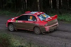 Wilks split with Suzuki at the end of 2006 as they moved their focus to a full-fledged enter in World Rally Championship (WRC). In 2007 Wilks joined the Mitsubishi Motors UK Works team driving a Group N specification Mitsubishi Lancer Evolution IX in the BRC. Over the next two years Wilks won eight rallies and the BRC title outright.[2]