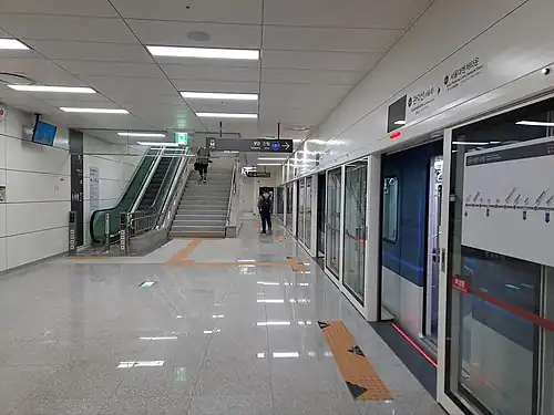 Gwanaksan Station (Korean관악산역) is a subway station on the Sillim Line in Gwanak District, Seoul. It will be a transfer station with the Seoul Light Rail West Line in the future. From this station to Saetgang Station, all stations are underground. There are two late-night trains that stay at the station overnight.