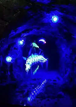 The cave complex re-opened in 2011. It now has historical exhibits, but is chiefly entertainment-focused, with aquariums, sculptures, light shows, children's amusements, and other attractions, including an underground winery.[3][1]