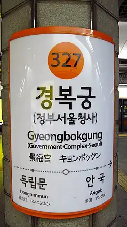 - ^ "Gyeongbokgug". Seoul Metro. Archived from the original on 2017-10-30. Retrieved 2017-01-20.