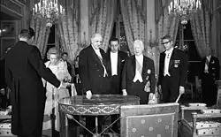 During World War II, the building served as the Paris residence of Otto Abetz, German ambassador to Vichy France, until it was confiscated in 1944. Held by the French Ministry of Foreign Affairs, it was restored to West Germany in 1961 during the negotiations on the Élysée Treaty. As a new embassy then already was under construction on Avenue Franklin Delano Roosevelt, the building solely served for representative purposes. Extensively renovated and re-opened as the ambassador's residence in 1968, the building's history has been documented by the German Forum for Art History Paris.