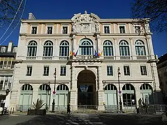The Hôtel de Ville (French pronunciation: [otɛl də vil], City Hall) is a municipal building in Pau, Pyrénées-Atlantiques, western France, standing on Place Royale. It was originally commissioned as a theatre, but was later remodeled internally to serve as a town hall as well. It was designated a monument historique by the French government in 2017.[1]