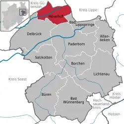 Location of Hövelhof within Paderborn district