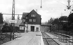 The new station building opened on 22 February 1922. The main floor featured a common office for the station master, signaling control, telegraphy and ticket sales, a room for cargo handling and a waiting room for passengers. The station master's apartment in the upper story consisted of four rooms and a kitchen. However, it had limited space due to roof angles and steep stairs. There was also a cargo building on the platform and the station featured six tracks at the time. In 1926 the station was staffed by a station master, a clerk, a switcher, five telegraphists, six station workers and a journeyman.[12]