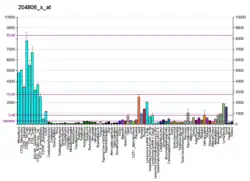 18. ^ a b c d Garcia-Beltran WF, Hölzemer A, Martrus G, Chung AW, Pacheco Y, Simoneau CR, et al. (September 2016). "Open conformers of HLA-F are high-affinity ligands of the activating NK-cell receptor KIR3DS1". Nature Immunology. 17 (9): 1067–1074. doi:10.1038/ni.3513. PMC 4992421. PMID 27455421.