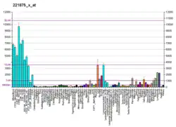 HLA class I histocompatibility antigen, alpha chain F is a protein that in humans is encoded by the HLA-F gene.[4][5] It is an empty intracellular molecule that encodes a non-classical heavy chain anchored to the membrane and forming a heterodimer with a β-2 microglobulin light chain. It belongs to the HLA class I heavy chain paralogues that separate from most of the HLA heavy chains. HLA-F is localized in the endoplasmic reticulum and Golgi apparatus, and is also unique in the sense that it exhibits few polymorphisms in the human population relative to the other HLA genes; however, there have been found different isoforms from numerous transcript variants found for the HLA-F gene. Its pathways include IFN-gamma signaling and CDK-mediated phosphorylation (cyclin-dependent kinase) and removal of the Saccharomyces cerevisiae Cdc6 protein, which is crucial for functional DNA replication.[6]