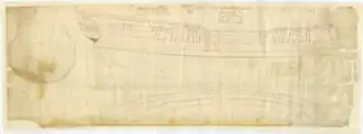 Africa was one of two Essex-class vessels, built according to a design by naval architect Thomas Slade. They were intended to be slightly larger versions of HMS Asia, also designed by Slade but still under construction at the time Africa was launched. Admiralty orders for her construction were issued on 31 December 1758, as part of a general Royal Navy expansion following France's declaration of war earlier in that year. Construction commenced on 7 May 1758 and was completed on 1 August 1761.[2] The vessel was named in November 1759; in selecting her name the Board of Admiralty continued a tradition, dating to 1644, of using well-known geographic features.[2][3]