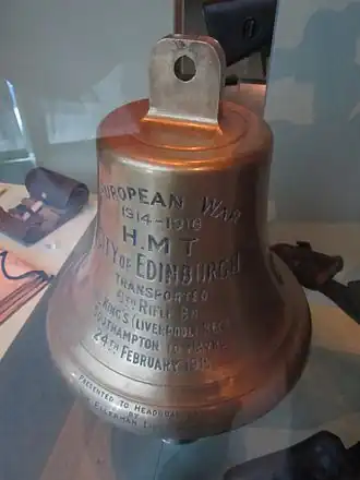 City of Edinburgh helped transport the Liverpool Rifles from Southampton to Le Havre on 24 February 1915.