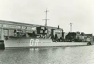 Simultaneously, the British Royal Navy held a design competition for its first postwar destroyers. One of the designs, HMS Ambuscade, built by Thornycroft, impressed Dutch officials. The Netherlands subsequently adopted a modified version of this design for service in the East Indies, where Japan was increasingly viewed as the most significant threat.[3]: 14 Compared to the British design, the Dutch version was slightly slower and had a reduced range in exchange for a more powerful anti-aircraft armament and the inclusion of a reconnaissance seaplane.[3]: 2 The design became known as the Admiralen-class destroyer, as every ship was named after a Dutch 17th century admiral.[4]: 16-17,20-21 The eight destroyers in the class were divided into two subgroups: the first four, including De Ruyter, were equipped for minelaying, while the latter four displaced slightly more and furnished with minesweeping equipment.[4]: 15