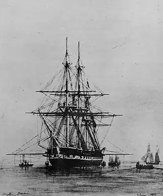 HSwMS Desirée was a Swedish frigate of the Royal Swedish Navy, named after Queen Desideria of Sweden-Norway. She was built at the Karlskrona Naval Shipyard to the designs of naval constructor Johan Aron af Borneman and launched on 24 July 1843. Her armament consisted of 46 thirty-pounder guns and six 7-inch shell guns.[1][2]