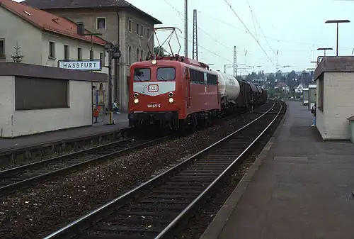 Haßfurt station is a railway station in the municipality of Haßfurt, located in the Haßberge district in Bavaria, Germany.
