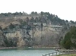 The park also features caves, sinkholes, and bluffs overlooking the lake. It is a prominent example of karst topography, which is geological formation shaped by the dissolution of a layer or layers of soluble bedrock.[5] A 70-acre (28 ha) portion of the park was designated as the Ha Ha Tonka Karst Natural Area in 1981.[6]