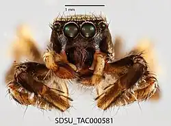 2. ^ Griswold, Charles E. (1987). "A revision of the jumping spider genus Habronattus F. O. P.-Cambridge (Araneae; Salticidae), with Phenetic and Cladistic Analyses". University of California Publications in Entomology. 107: 1–344.