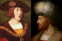 Meanwhile, King Francis I of France, enemy of the Habsburgs, and Suleiman the Magnificent were moving forward with a Franco-Ottoman alliance, formalized in 1536, that would counterbalance the Habsburg threat. In 1547, when Suleiman attacked Persia, France sent him the ambassador Gabriel de Luetz to accompany him in his campaign.[2] Gabriel de Luetz was able to give decisive military advice to Suleiman, as when he advised on artillery placement during the Siege of Vān.[2]