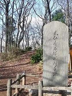 Shogunzuka location stele on Hachikokuyama, Tokyo/Saitama, Japan.
