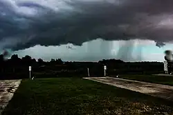 The community of Hackberry was heavily damaged by Hurricane Ike in September 2008.[4] Ike's 22-foot (6.7 m) storm surge crawled 60 miles (97 km) inland and devastated Hackberry.[5][6] The small community was flooded by the high storm surge and all structures (houses, churches, buildings, etc.) were affected.[4] Flooding caused by the hurricane killed many cattle and other farm animals.[4] The community also suffered severe damage in Hurricane Rita, in 2005, and again suffered severe damage due to the landfall of Category 4 Hurricane Laura in the late evening and early morning of August 27, 2020, Hackberry being within the eye-wall of the storm.