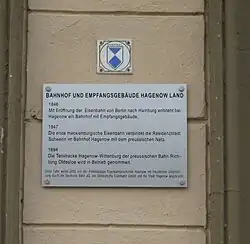 Hagenow Land station is a railway junction in Mecklenburg-Vorpommern, which was opened on 15 October 1846. It is located about 2.5 kilometres from the centre of the small town of Hagenow. It is classified by Deutsche Bahn as a category 5 station.[1]