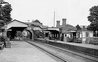 Lower Hagley lies downhill and started to expand with the arrival of the Oxford, Worcester and Wolverhampton Railway in 1852 and the eventual building of Hagley railway station. The growth of what is now known as West Hagley initiated a shift in the focus of the village.[3] Today it includes the shopping area and the schools, although the precise dividing line between the two areas is not formally defined.
