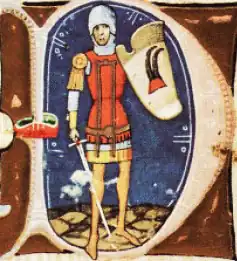 ![]() Hahold as depicted in the Illuminated Chronicle with false coat of arms | |