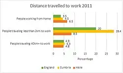- ^ "distance travelled to work" (PDF). CumbriaAction. Census 2011. Archived from the original (PDF) on 2 April 2015. Retrieved 24 March 2015.