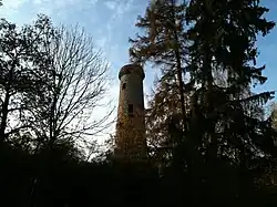 The Hainigturm is a tower and tourist attraction in the Vogelsbergkeis, (Hesse, Germany). It is located between Lauterbach and Angersbach. The tower, which now consists of stones, used to be made completely out of wood. However the wood got rotten so the tower had to be rebuilt in 1907.