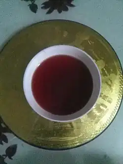 Mother wine chicken (Chinese: 娘酒鸡, 娘酒雞), also known as ginger wine chicken or wine fried chicken, is a traditional Hakka relishing dish eaten in winter, made with ginger, chicken and rice wine. To start with, minced ginger and chopped chicken are fried together, and then with a moderate amount of glutinous rice wine boiled.[4]