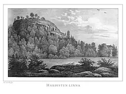 Hakoinen Castle (Hakoisten linnavuori in Finnish) is the ruins of a fortification on a hill in Janakkala, Finland. Dated to the medieval period, the fortification was situated on a very steep-sided rock by Lake Kernaala (Kernaalanjärvi) in a manner reminiscent of the hill fort tradition. The top of the rock is 63 metres (207 ft) above the water level of the lake. Today very little remains of the castle. Equally little is known about its origins.