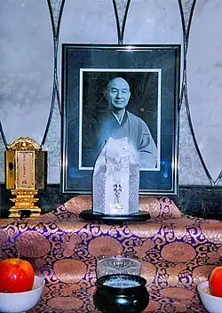 Maezumi died on May 15, 1995, while visiting his family in Japan, drowning in bath while being drunk.[13] Not long before dying, he intended to create an inka shomei (dharma transmission) ceremony for Tetsugen Bernard Glassman, to acknowledge the Sanbo Kyodan connection of his past as an integral part of the Dharma transmission of White Plum Asanga.[14]
