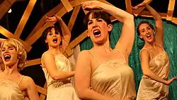 A stunning female septet... with their talent as singer-dancers and their silky underwear, they stirringly evoke the self-conscious decadence of the Jazz Age. [4]