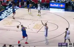 - On January 23, 2025, Nikola Jokić made a 3/4 court (approximately 70 feet) one-handed heave at the end of the third quarter in a 132-123 win for the Denver Nuggets over the Sacramento Kings.[39]
