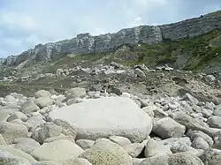 Tar Rocks are located near the bay. They are the relics of an ancient landslide, with the majority often hidden at high tide.[7] The British cargo steamer SS Thames was wrecked at Tar Rocks in 1891, after being driven ashore in fog.[8][9] In 1930, SS Barmston, a collier, was also shipwrecked at the site and became a total loss.[10]