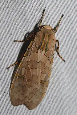 - ^ Rose, Joshua Stuart (July 1, 2009). "Species Halysidota schausi - Schaus' Tussock Moth - Hodges#8205.1". BugGuide. Retrieved September 17, 2019.