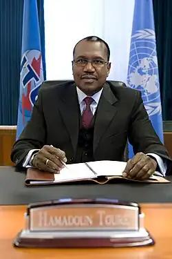 Hamadoun Ibrahim Touré (born September 3, 1953) [1] of Mali was Secretary General of the International Telecommunication Union (ITU), the specialized agency of the United Nations dedicated to information and communication technologies (ICTs), from 2007 to December 2014. He was re-elected for a second four-year term in 2010.[2] Since 2007, he has worked to fulfil ITU's mandate to 'connect the world' and help achieve the Millennium Development Goals.