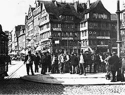On the day the strike ended, violent clashes broke out, particularly in Hamburg's Neustadt district. Strike breakers fired shots from revolvers, provoking thousands of people to gather at Schaarmarkt. They engaged in street battles with the advancing police. The police broke up the crowd with armed force, and the number of people injured in these clashes was estimated at 150. Similar riots broke out in the following days. Under the impression of this open violence, a large number of strikebreakers fled the city. This increased the chances of the strikers being rehired.[10]