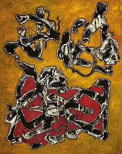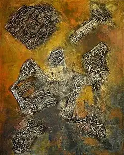 In his early paintings (1972-1979) could be mainly figurative-surrealistic tendencies. With time, it moved to a more abstract gestural painting techniques in proximity to Informal Art, Tachism or Abstract Expressionism – tendencies formed immediately after World War II, which continue until today.5 They are regarded as a further development of Abstract Art, originating in the 19th century, but are perceived as autonomous movements only at the beginning of Modernism in the 20th century.6