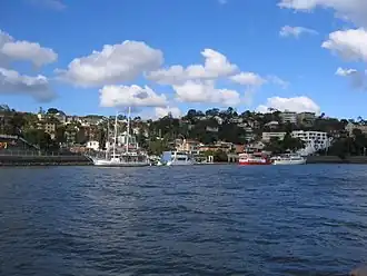 Historically Kingsford Smith Drive divided the suburb into a hilly residential area to the north and west of the road and a flat industrial area to the south and east which featured wharves used for the transport of goods (and for a time Brisbane's main port facility). However, the need to accommodate larger vessels has led to the relocation of wharves to the current Port of Brisbane at the mouth of the river and the rising value of riverfront land for residential purposes has led to an urban redevelopment plan called Hamilton Northshore, in which industrial sites will gradually be replaced by residential development and associated services.[6]