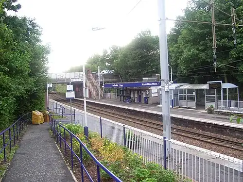 Hamilton West railway station serves the Hamilton West area of Hamilton, South Lanarkshire, in Scotland, lying on the Argyle Line.