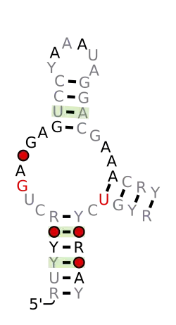Predicted secondary structure and sequence conservation of Hammerhead ribozyme (type III)