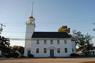 The Hampstead Meetinghouse, also once known as Hampstead Town Hall, is a historic meeting house at 20 Emerson Avenue in Hampstead, New Hampshire. The core of this dual-purpose (religious and civic) structure was begun in 1749, although its interior was not completely finished until about 1768. It is one of a number of fairly well-preserved 18th-century meeting houses in southeastern New Hampshire, and was listed on the National Register of Historic Places in 1980.[1]