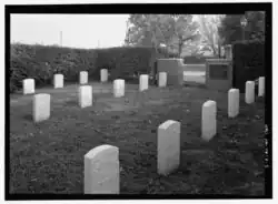 The Hampton VAMC National Cemetery is the smallest cemetery overseen by the Department of Veterans Affairs. It is located on the grounds of the Hampton Veterans Affairs Medical Center. It was established in 1898 at the Southern Branch of the National Home for Volunteer Soldiers during a strict quarantine for a yellow fever epidemic.[1] Every man who died during the quarantine was buried on site, because no one was allowed to enter or leave the station. All burials took place between July 30 and August 15, 1899. Twenty-two were buried, most of them from New York and Pennsylvania.[2]