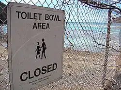 Along the left point is the "Toilet Bowl", a natural spa tub that gently rises and falls with the tide. However, water in the Toilet Bowl can rise and fall with greater intensity during inclement weather conditions, and has caused injuries. Because of that, The Bowl has been permanently closed.[19]