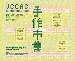 • The Jockey Club Creative Arts Centre (JCCAC) is a multi-disciplinary artists’ centre in Shek Kip Mei which was officially opened on 28 September 2008.[6][7] The first handicrafts fair is held in 2012.[8][9] JCCAC will hold a handicraft fair each quarter at weekends which is a platform for around a hundred people to exchange or sell their handicrafts.