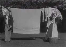 Hanging Out the Clothes is a black and white silent short comedy film shot in 1897 by British filmmaker George Albert Smith.[1] Filmed at St Ann's Well and Garden in Brighton, the short piece shows a couple messing around whilst hanging their clothes up.[1][2]