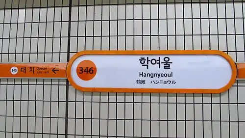 2. ^ a b "Hangnyeoul". Seoul Metro. Archived from the original on 2017-02-17. Retrieved 2017-02-17.