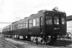 Two 2-car 1000 series sets were delivered in 1954, consisting of cars 1000 + 1001 and 1002 + 1003.[1] Each car was motored, equipped with four 75 kW motors.[1] The cars were mounted on Sumitomo FS-303 bogies, although car 1002 was used experimentally with FS-305 Alstom-link bogies.[1]