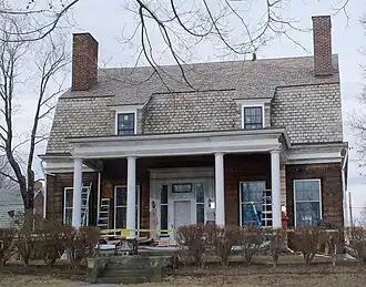 The house was built in 1838 from a design specified in a contract between the builder, Samuel Reynolds, and the owner, Leonard Hanna, the house was remodeled in 1907.