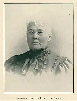 Hannah Keziah Clapp (1824 - October 8, 1908) was a teacher, activist and feminist in Nevada, US. She organized the state's first private school and was co-founder of the state's first kindergarten. She served as principal of the Lansing Female Seminary; taught at Michigan Female College; and was the first instructor and librarian at the University of Nevada, Reno. Clapp co-founded Reno's 20th Century Club, which in 1983 was added to the National Register of Historic Places listings in Washoe County, Nevada. She was born in Albany, New York in 1824, and arrived in Carson City in 1860, where she established the Sierra Seminary. A suffragette, Clapp also worked for women's right to vote.[1] Clapp was a charter member of the Nevada Historical Society.[2] She died in Palo Alto, California in 1908.[3]
