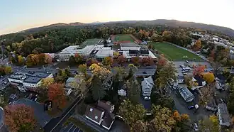 Hanover High School is the only high school in the Dresden School District, and is located in Hanover, New Hampshire, United States. In 1963 it became the first interstate high school in the country as part of a bill that was the last signed into action by John F. Kennedy.[3] Today it accepts students from several communities in New Hampshire and Vermont. Enrollment is approximately 786 students, the majority of whom come from the towns of Hanover (New Hampshire) and Norwich, Vermont. 11% of the student body attends on a tuition basis from towns such as Cornish and Lyme, New Hampshire, and Strafford and Hartland, Vermont. The school employs 79 full-time faculty members.